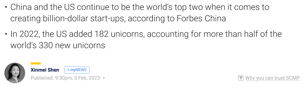 China added 74 unicorns in 2022, maintaining steady pace of growth despite fundraising crunch Feb 03, 2023∙ PaidShareThis post is for paid subscribersAlready a paid subscriber? Sign in