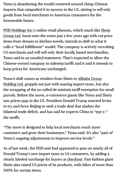 Temu Ditches Chinese Imports Model to Avoid Trump’s TariffsMay 02, 2025∙ Paid22ShareThis post is for paid subscribersAlready a paid subscriber? Sign in